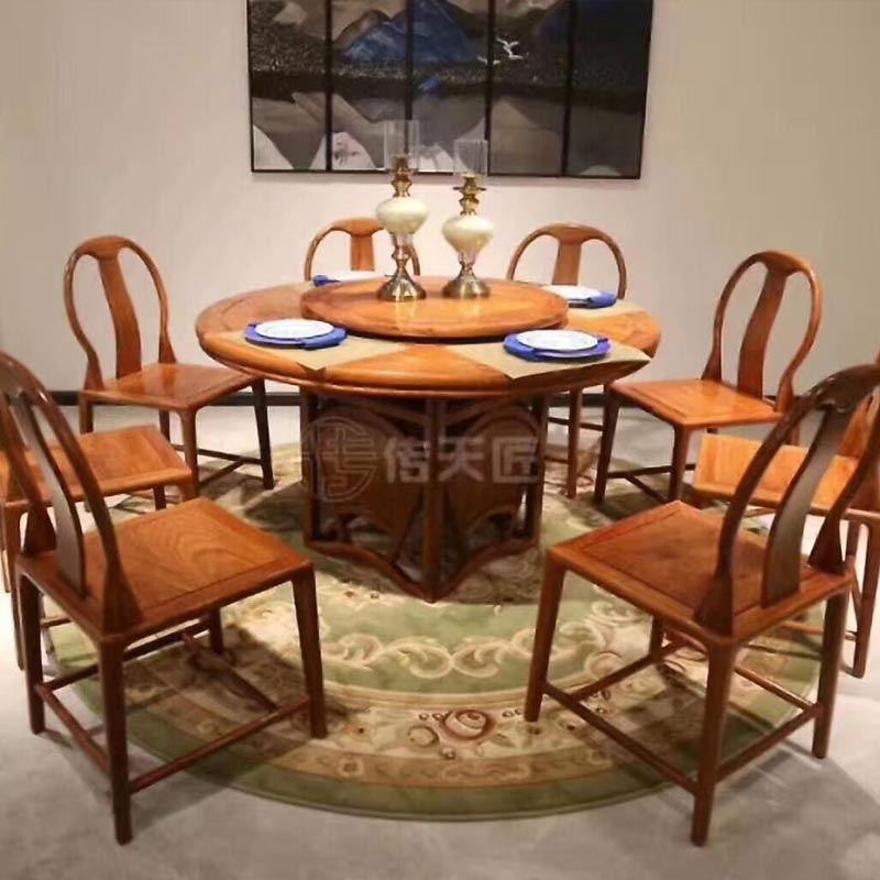 Lahko ste prepričani, da pri nas kupite prilagojeno novo kitajsko okroglo jedilno mizo. Združuje praktičnost, umetnost, zbirko in dediščino, ustvarja eleganten in plemenit kitajski umetniški dom za potrošnike in prikazuje globoko kitajsko kulturo. 1,38-metrska okrogla miza Zhishan je skrbno izdelana iz palisandra ježa, ki ima odlično teksturo, nežno svilnato teksturo in barvo, podobno žadu.
